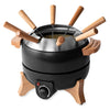 De fondueset is geschikt voor maximaal 1,5 liter kaas-, chocolade- of bouillonfondue, of 1,2 liter oliefondue. Het compacte design neemt weinig ruimte in beslag en is gemakkelijk op te bergen. Met de houten handgrepen verplaats je de pan veilig, zelfs als deze nog warm is. Het extra lange netsnoer van 2 meter zorgt voor een nette, flexibele opstelling zonder gedoe met verlengsnoeren op tafel.